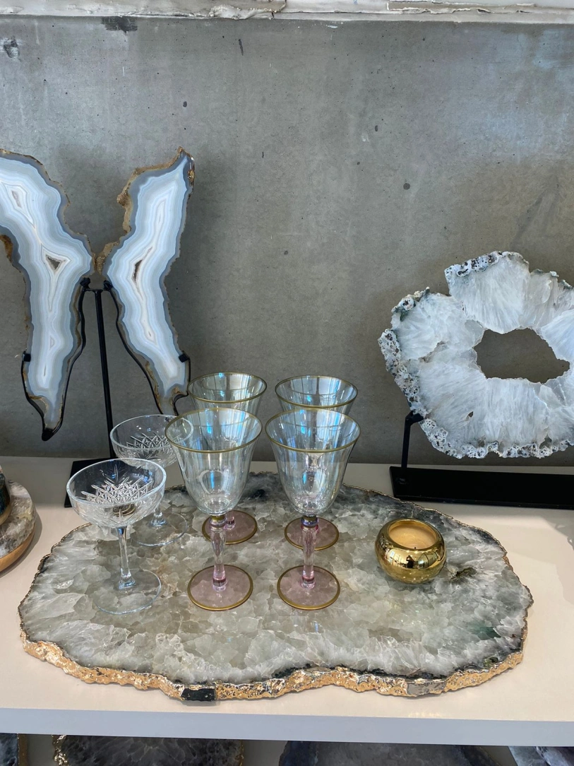 Transforme qualquer ambiente com o charme único do Platter de Ágata Natural, uma peça que une sofisticação, exclusividade e a beleza milenar das pedras brasileiras. Cada platter é uma obra de arte da natureza: cortado e polido à mão, preserva os veios, cores e formas autênticas da ágata, tornando cada unidade 100% única.